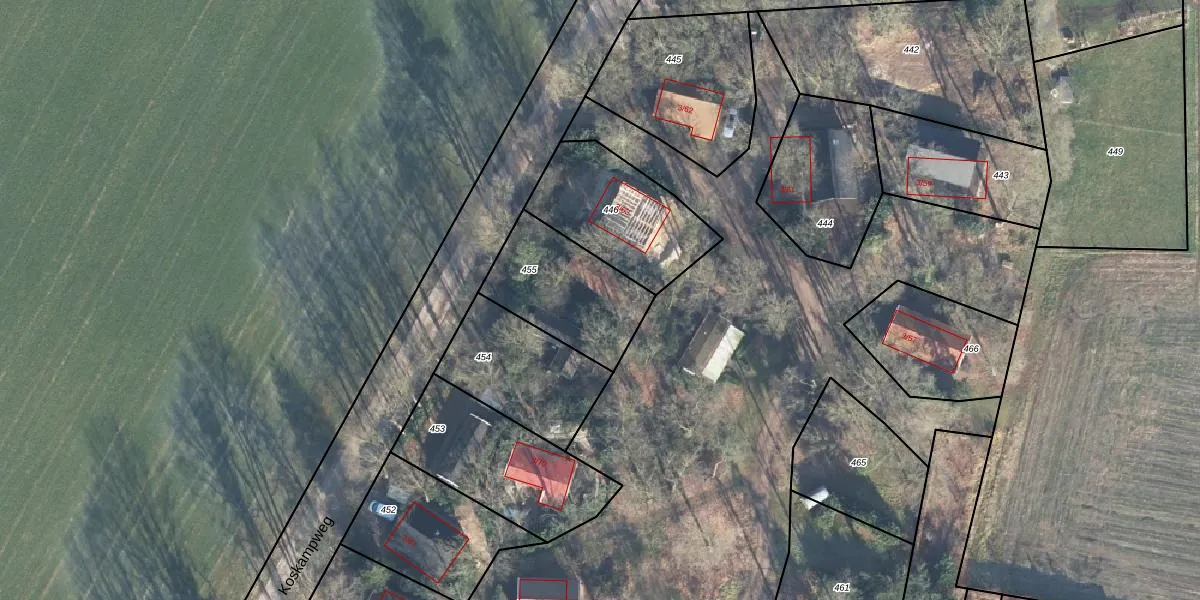 Koskampweg 3-64 is gelegen op kadastraal perceel RLO00R455. Deze kadastrale aanduiding is uniek en wordt gebruikt door het Kadaster om eigendomsrechten en andere zakelijke rechten vast te leggen. Het perceel maakt onderdeel uit van de kadastrale gemeente Ruurlo.