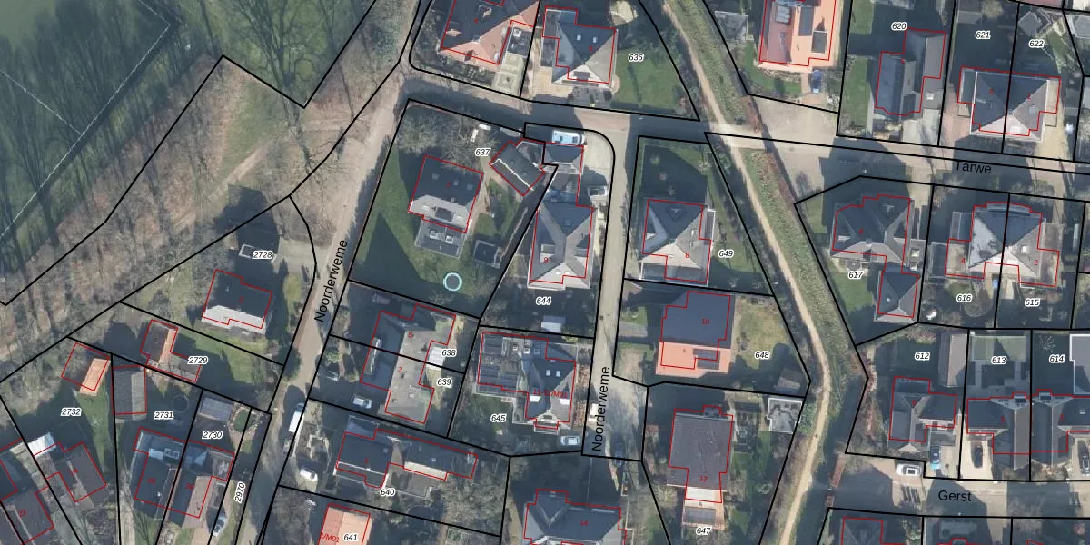 Het perceel waarop Noorderweme 9 staat heeft een oppervlakte van 588 m². Dit is een groot perceel. De perceeloppervlakte wordt geregistreerd door het Kadaster. Gedetailleerde informatie over de maten van dit perceel kunt u vinden in het rapport Kadastrale kaart met maatvoering van Noorderweme 9.
