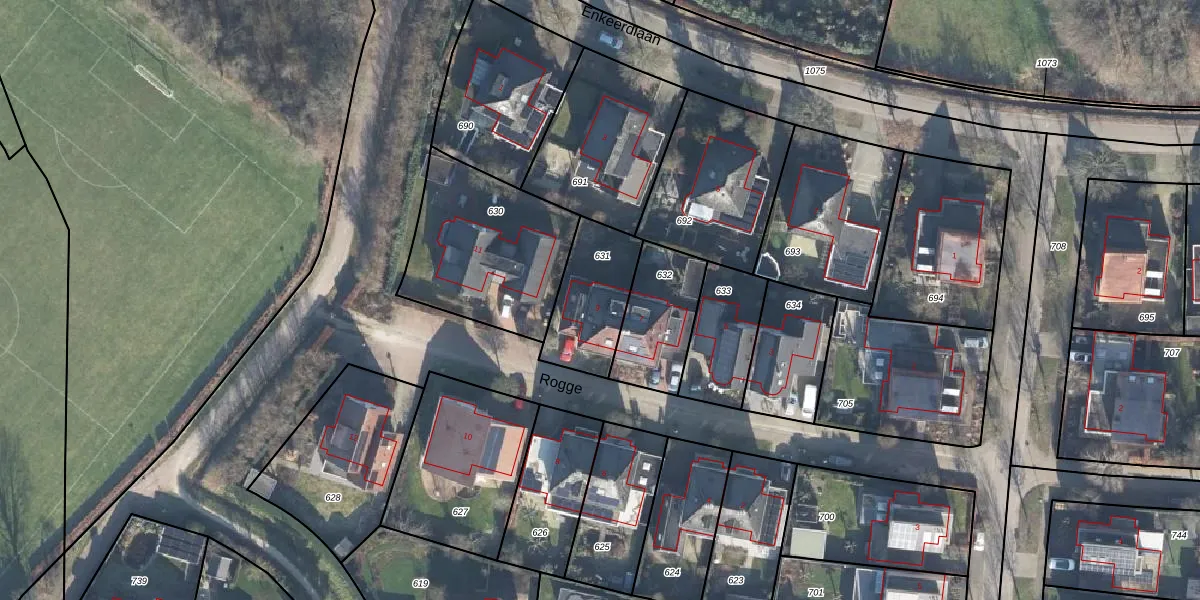 Gebruik de zoekbalk of klik op een perceel voor informatie over de adressen binnen dit perceel.