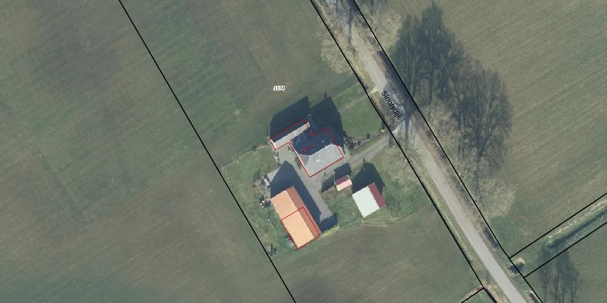 Slootsdijk 15 is gelegen op kadastraal perceel RLO00T1174. Deze kadastrale aanduiding is uniek en wordt gebruikt door het Kadaster om eigendomsrechten en andere zakelijke rechten vast te leggen. Het perceel maakt onderdeel uit van de kadastrale gemeente Ruurlo.