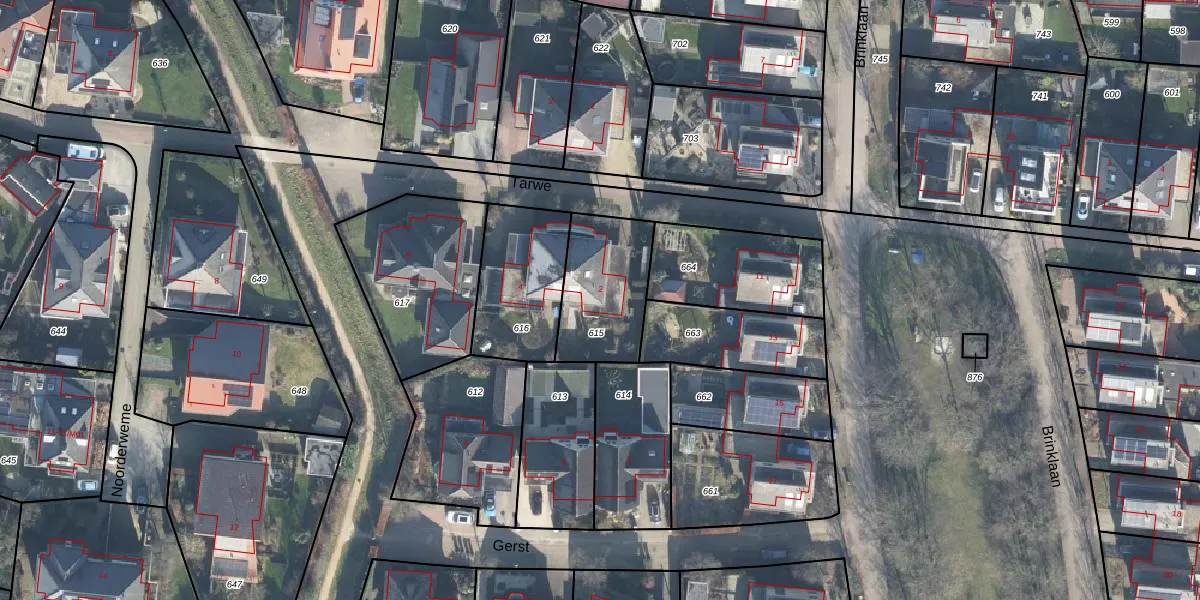 Het perceel waarop Tarwe 2 staat heeft een oppervlakte van 340 m². Dit is een groot perceel. De perceeloppervlakte wordt geregistreerd door het Kadaster. Gedetailleerde informatie over de maten van dit perceel kunt u vinden in het rapport Kadastrale kaart met maatvoering van Tarwe 2.