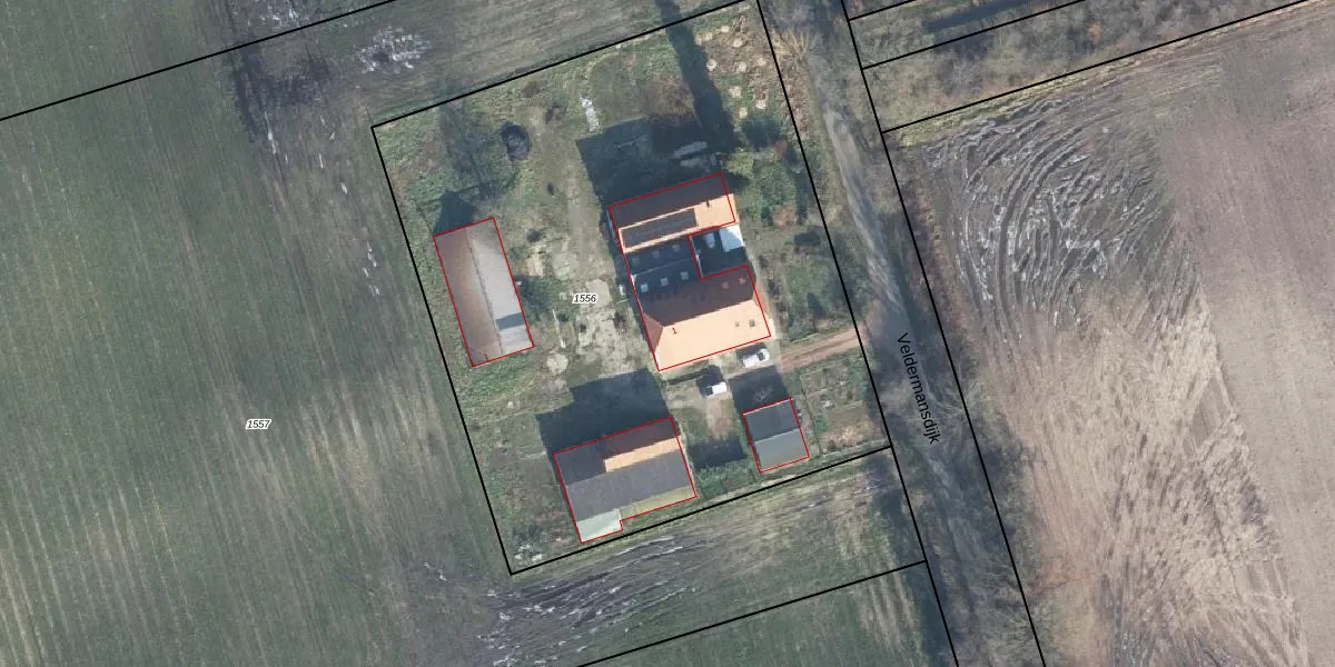 Het perceel waarop Veldermansdijk 1 staat heeft een oppervlakte van 4315 m². Dit is een zeer groot perceel. De perceeloppervlakte wordt geregistreerd door het Kadaster. Gedetailleerde informatie over de maten van dit perceel kunt u vinden in het rapport Kadastrale kaart met maatvoering van Veldermansdijk 1.