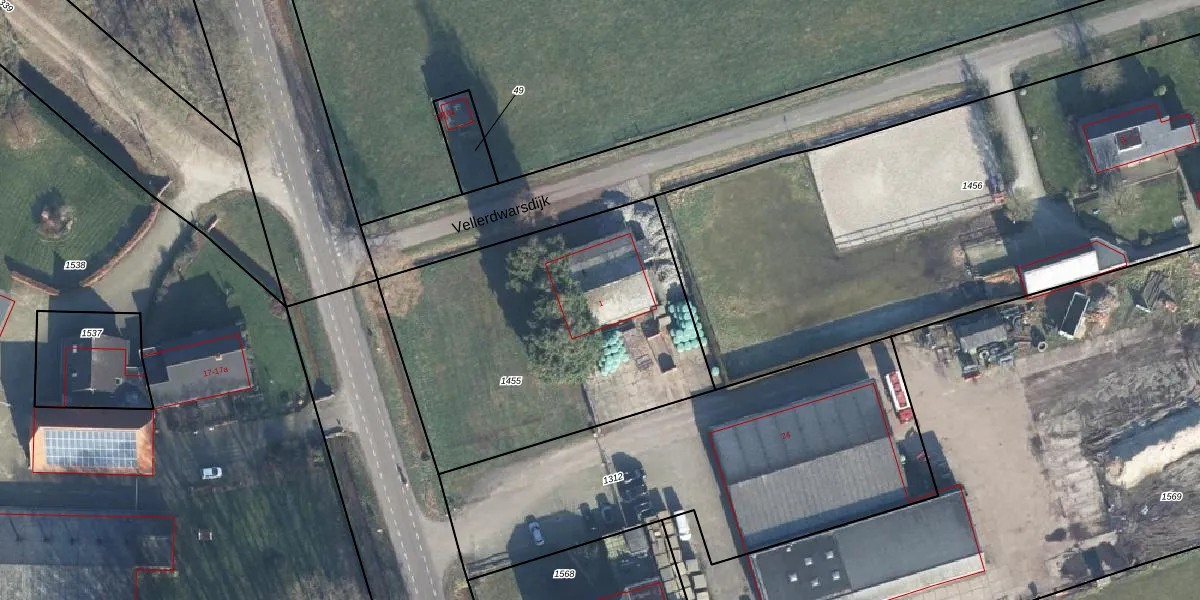 Vellerdwarsdijk 1 is gelegen op kadastraal perceel RLO00F1455. Deze kadastrale aanduiding is uniek en wordt gebruikt door het Kadaster om eigendomsrechten en andere zakelijke rechten vast te leggen. Het perceel maakt onderdeel uit van de kadastrale gemeente Ruurlo.