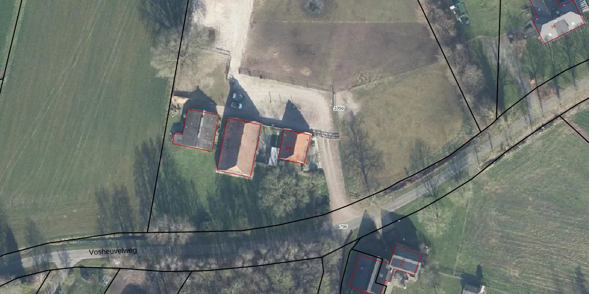 Het perceel waarop Vosheuvelweg 2-01 staat heeft een oppervlakte van 1,0 ha. Dit is een zeer groot perceel. De perceeloppervlakte wordt geregistreerd door het Kadaster. Gedetailleerde informatie over de maten van dit perceel kunt u vinden in het rapport Kadastrale kaart met maatvoering van Vosheuvelweg 2-01.