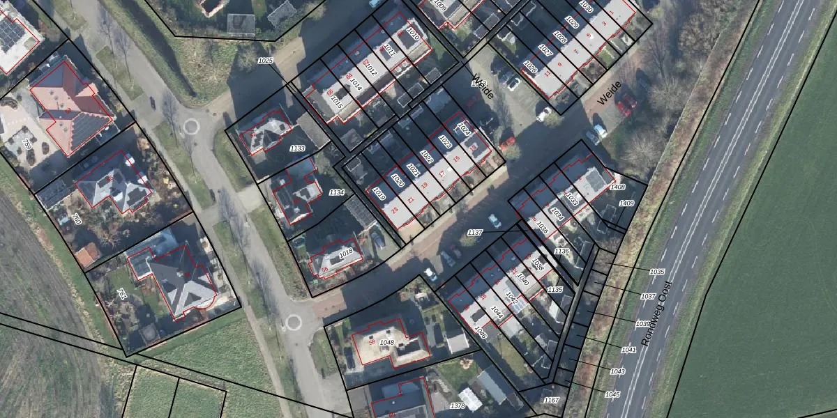 Weide 21 is gelegen op kadastraal perceel RLO00T1020. Deze kadastrale aanduiding is uniek en wordt gebruikt door het Kadaster om eigendomsrechten en andere zakelijke rechten vast te leggen. Het perceel maakt onderdeel uit van de kadastrale gemeente Ruurlo.