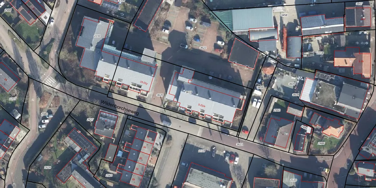 Wildenborchseweg 21-g is gelegen op kadastraal perceel RLO00I3619. Deze kadastrale aanduiding is uniek en wordt gebruikt door het Kadaster om eigendomsrechten en andere zakelijke rechten vast te leggen. Het perceel maakt onderdeel uit van de kadastrale gemeente Ruurlo.