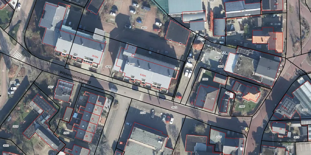 Wildenborchseweg 7 is gelegen op kadastraal perceel RLO00I3619. Deze kadastrale aanduiding is uniek en wordt gebruikt door het Kadaster om eigendomsrechten en andere zakelijke rechten vast te leggen. Het perceel maakt onderdeel uit van de kadastrale gemeente Ruurlo.