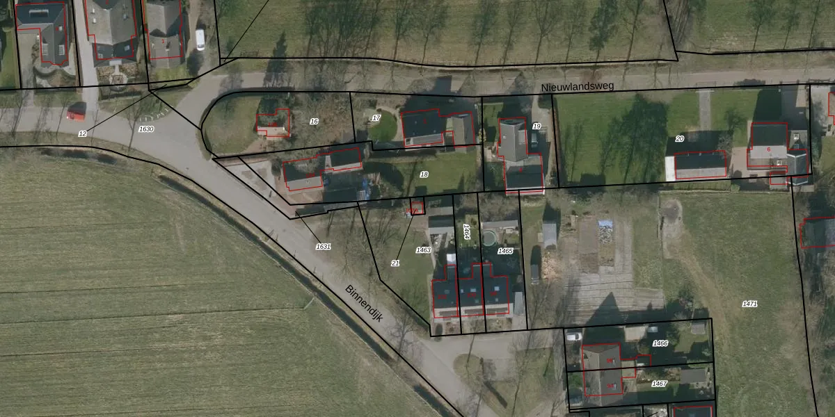 Gebruik de zoekbalk of klik op een perceel voor informatie over de adressen binnen dit perceel.