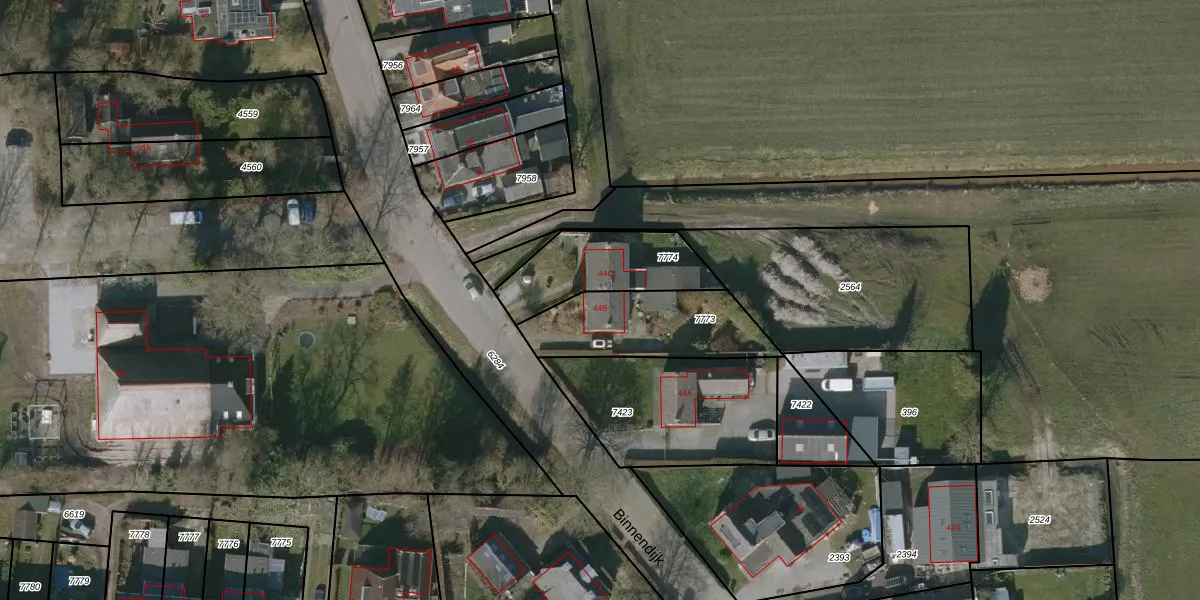 Het perceel waarop Binnendijk 44-B staat heeft een oppervlakte van 390 m². Dit is een groot perceel. De perceeloppervlakte wordt geregistreerd door het Kadaster. Gedetailleerde informatie over de maten van dit perceel kunt u vinden in het rapport Kadastrale kaart met maatvoering van Binnendijk 44-B.