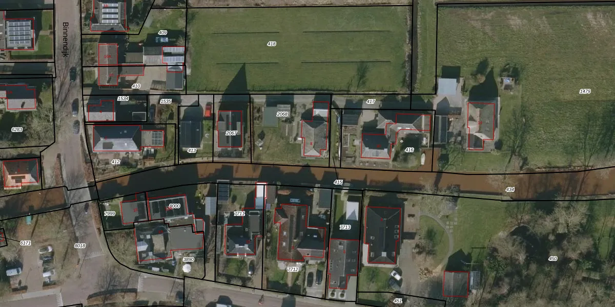 Het perceel waarop Binnendijk 8 staat heeft een oppervlakte van 589 m². Dit is een groot perceel. De perceeloppervlakte wordt geregistreerd door het Kadaster. Gedetailleerde informatie over de maten van dit perceel kunt u vinden in het rapport Kadastrale kaart met maatvoering van Binnendijk 8.