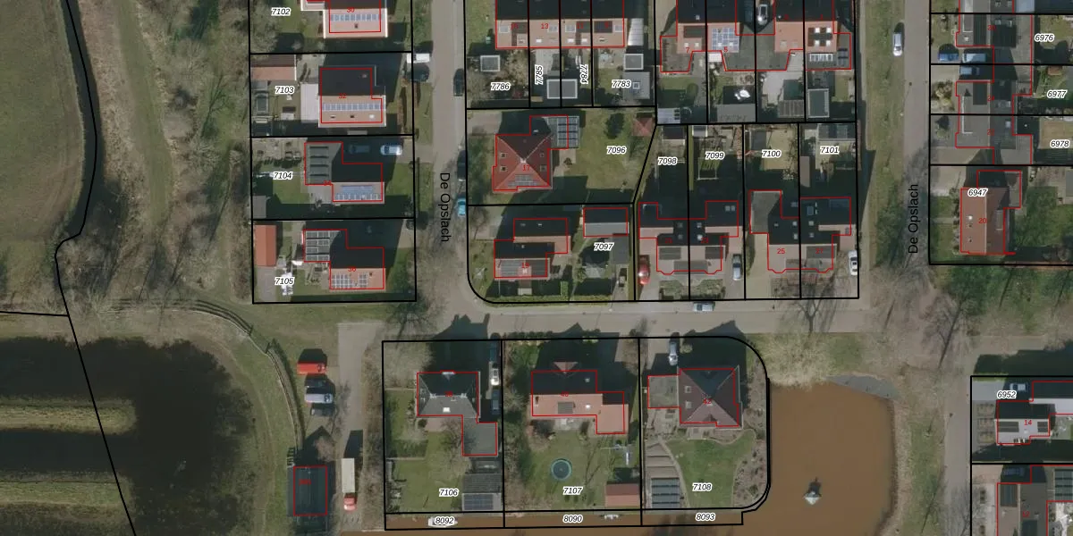 Gebruik de zoekbalk of klik op een perceel voor informatie over de adressen binnen dit perceel.