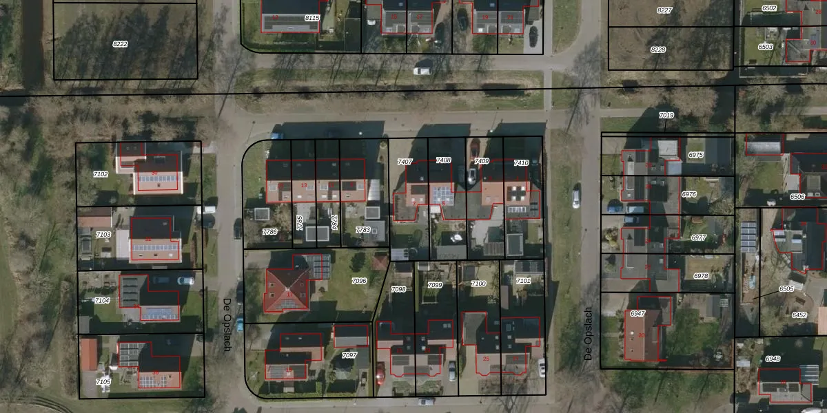 Het perceel waarop De Opslach 7 staat heeft een oppervlakte van 285 m². Dit is een middelgroot perceel. De perceeloppervlakte wordt geregistreerd door het Kadaster. Gedetailleerde informatie over de maten van dit perceel kunt u vinden in het rapport Kadastrale kaart met maatvoering van De Opslach 7.