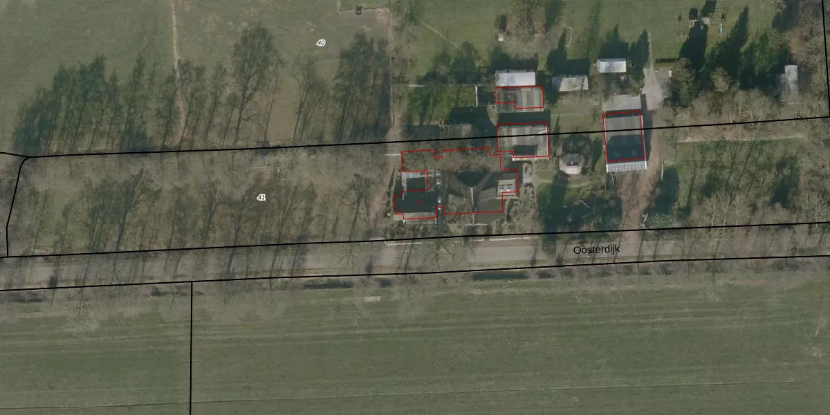 Het perceel waarop Oosterdijk 10 staat heeft een oppervlakte van 4710 m². Dit is een zeer groot perceel. De perceeloppervlakte wordt geregistreerd door het Kadaster. Gedetailleerde informatie over de maten van dit perceel kunt u vinden in het rapport Kadastrale kaart met maatvoering van Oosterdijk 10.