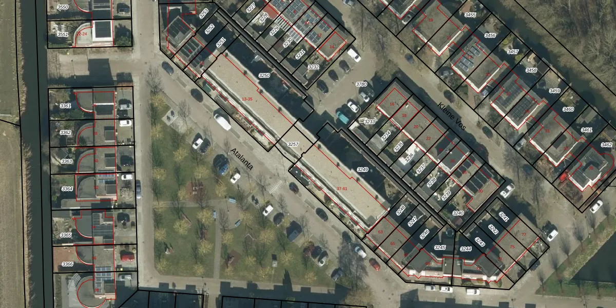 Het perceel waarop Atalanta 39 staat heeft een oppervlakte van 717 m². Dit is een groot perceel. De perceeloppervlakte wordt geregistreerd door het Kadaster. Gedetailleerde informatie over de maten van dit perceel kunt u vinden in het rapport Kadastrale kaart met maatvoering van Atalanta 39.
