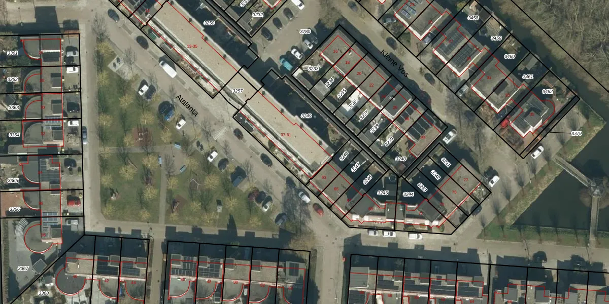Het perceel waarop Atalanta 55 staat heeft een oppervlakte van 717 m². Dit is een groot perceel. De perceeloppervlakte wordt geregistreerd door het Kadaster. Gedetailleerde informatie over de maten van dit perceel kunt u vinden in het rapport Kadastrale kaart met maatvoering van Atalanta 55.