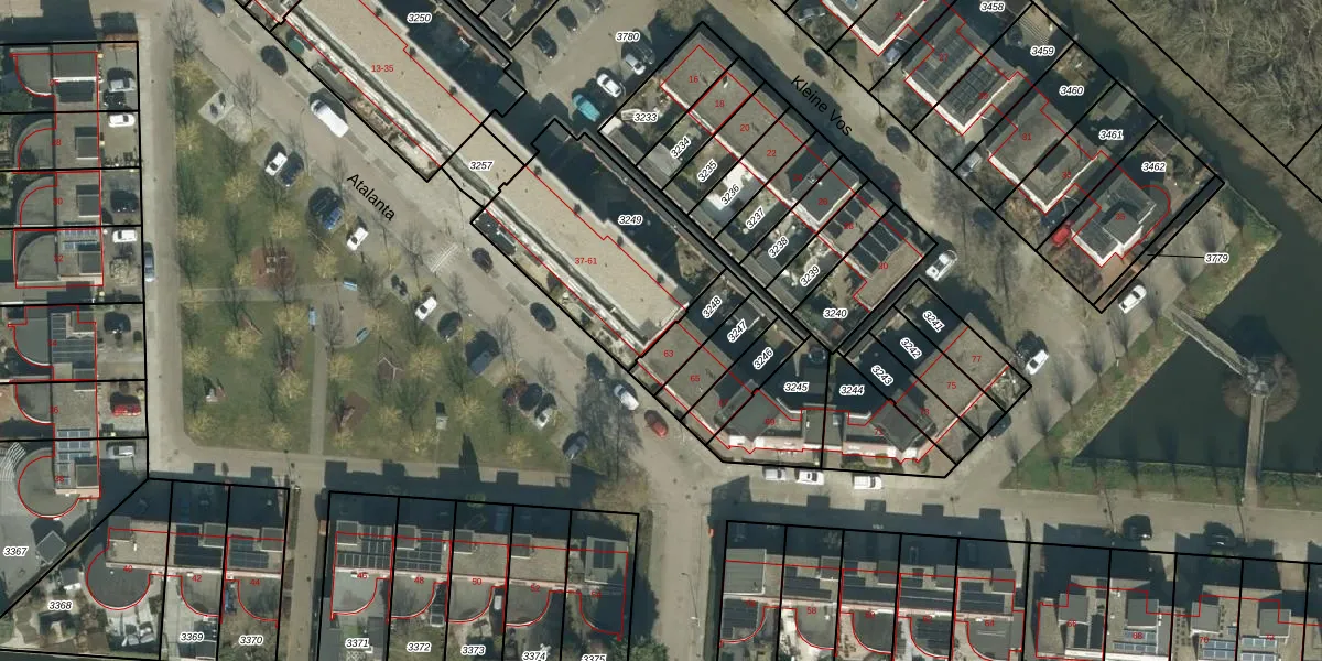 Het perceel waarop Atalanta 61 staat heeft een oppervlakte van 717 m². Dit is een groot perceel. De perceeloppervlakte wordt geregistreerd door het Kadaster. Gedetailleerde informatie over de maten van dit perceel kunt u vinden in het rapport Kadastrale kaart met maatvoering van Atalanta 61.