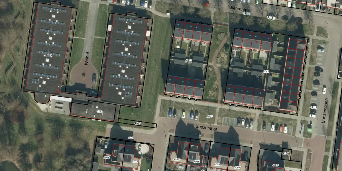 Het perceel waarop Boezemhof 17 staat heeft een oppervlakte van 983 m². Dit is een groot perceel. De perceeloppervlakte wordt geregistreerd door het Kadaster. Gedetailleerde informatie over de maten van dit perceel kunt u vinden in het rapport Kadastrale kaart met maatvoering van Boezemhof 17.