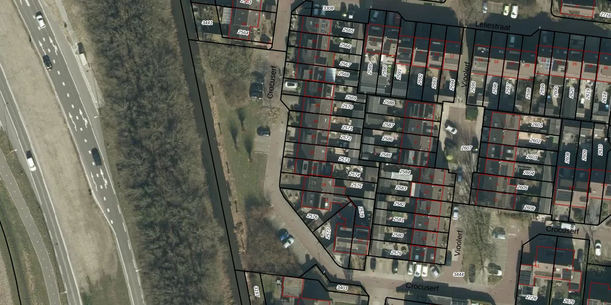 Gebruik de zoekbalk of klik op een perceel voor informatie over de adressen binnen dit perceel.