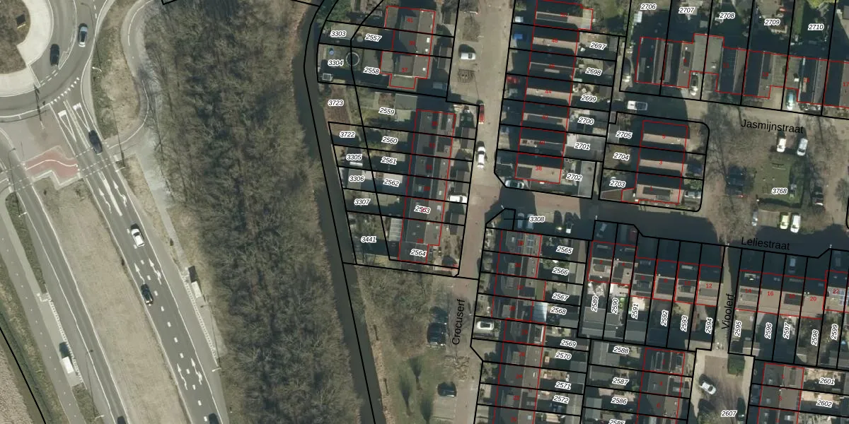 Gebruik de zoekbalk of klik op een perceel voor informatie over de adressen binnen dit perceel.
