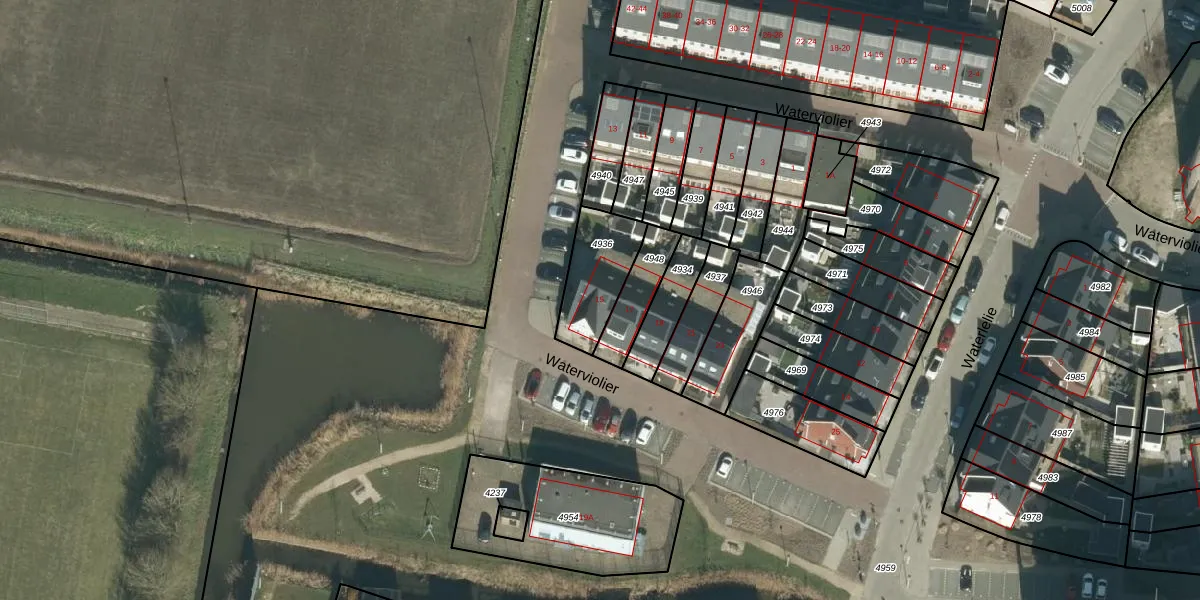 Het perceel waarop Waterviolier 15 staat heeft een oppervlakte van 217 m². Dit is een middelgroot perceel. De perceeloppervlakte wordt geregistreerd door het Kadaster. Gedetailleerde informatie over de maten van dit perceel kunt u vinden in het rapport Kadastrale kaart met maatvoering van Waterviolier 15.