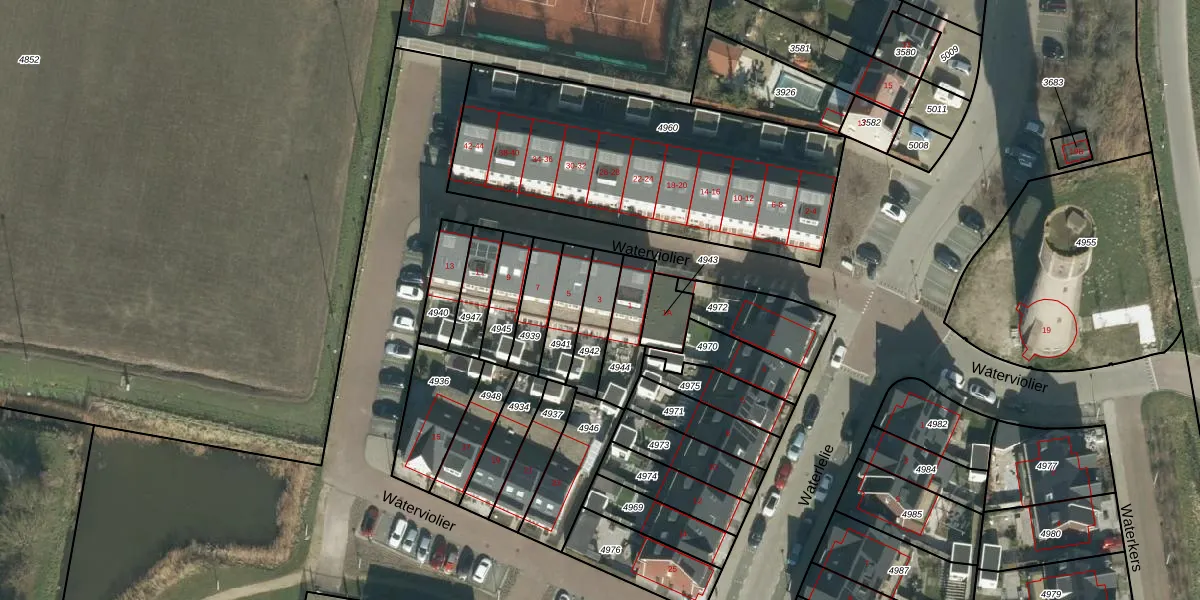Het perceel waarop Waterviolier 3 staat heeft een oppervlakte van 122 m². Dit is een middelgroot perceel. De perceeloppervlakte wordt geregistreerd door het Kadaster. Gedetailleerde informatie over de maten van dit perceel kunt u vinden in het rapport Kadastrale kaart met maatvoering van Waterviolier 3.