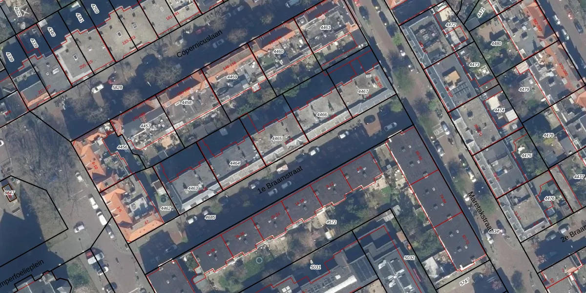 1e Braamstraat 21 is gelegen op kadastraal perceel GVH29AM4465. Deze kadastrale aanduiding is uniek en wordt gebruikt door het Kadaster om eigendomsrechten en andere zakelijke rechten vast te leggen. Het perceel maakt onderdeel uit van de kadastrale gemeente 's-Gravenhage.