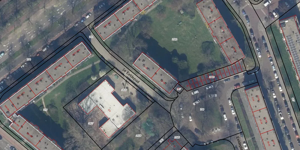 1e Eeldepad 14 is gelegen op kadastraal perceel GVH37AW2591. Deze kadastrale aanduiding is uniek en wordt gebruikt door het Kadaster om eigendomsrechten en andere zakelijke rechten vast te leggen. Het perceel maakt onderdeel uit van de kadastrale gemeente 's-Gravenhage.