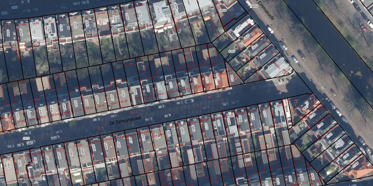 Het perceel waarop 2e Schuytstraat 41 staat heeft een oppervlakte van 163 m². Dit is een middelgroot perceel. De perceeloppervlakte wordt geregistreerd door het Kadaster. Gedetailleerde informatie over de maten van dit perceel kunt u vinden in het rapport Kadastrale kaart met maatvoering van 2e Schuytstraat 41.