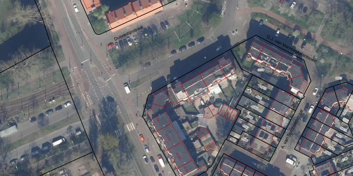Het perceel waarop het adres ligt is LDN03-M-4594. De afkorting 'LDN03' staat voor kadastrale gemeente Loosduinen. De gemiddelde perceeloppervlakte in de kadastrale gemeente Loosduinen is 1424,57 m². Dit perceel is met zijn 2663 m² dus groter dan gemiddeld. Het grootste perceel in de kadastrale gemeente is 4,61 km². Het kleinste perceel heeft een oppervlakte van 0 m². Op het perceel zijn 35 adressen aanwezig. De laatste wijziging in het de Basisregistratie Kadaster (BRK) was op 26-01-2005.