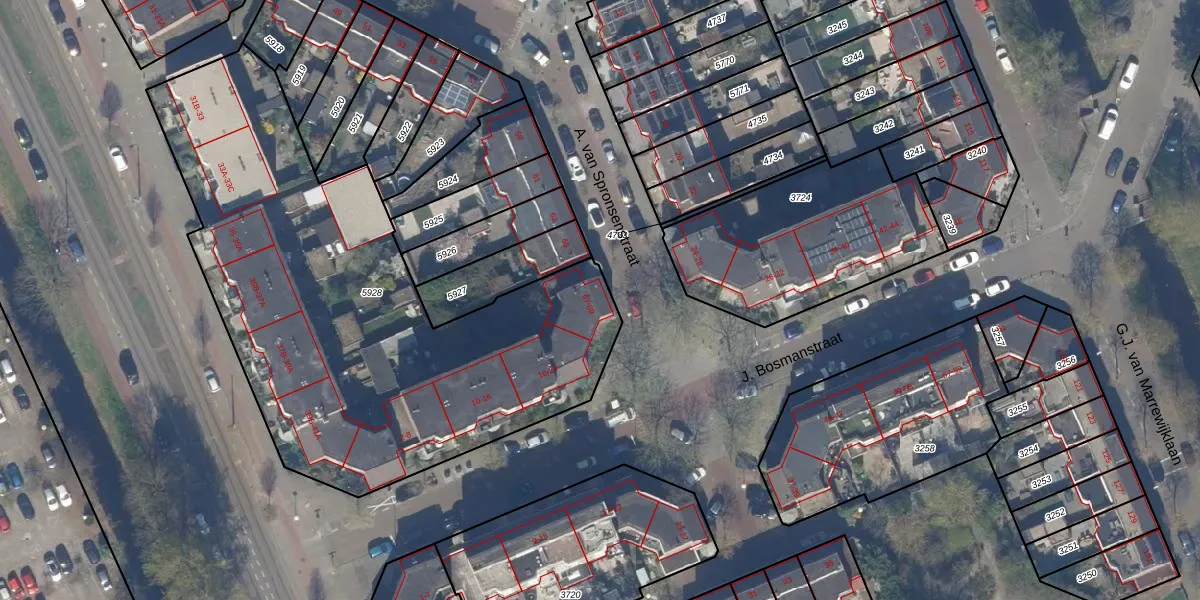 A. van Spronsenstraat 69 is gelegen op kadastraal perceel LDN03M5928. Deze kadastrale aanduiding is uniek en wordt gebruikt door het Kadaster om eigendomsrechten en andere zakelijke rechten vast te leggen. Het perceel maakt onderdeel uit van de kadastrale gemeente Loosduinen.