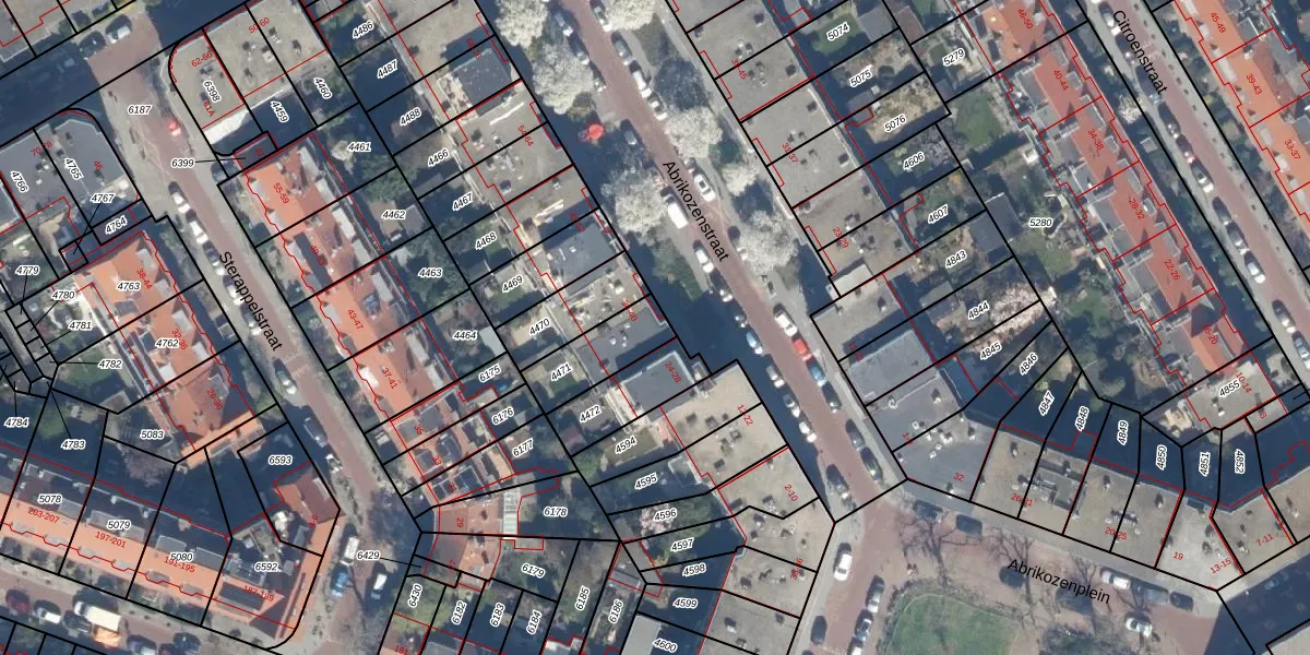 Abrikozenstraat 30 is gelegen op kadastraal perceel LDN03I4471. Deze kadastrale aanduiding is uniek en wordt gebruikt door het Kadaster om eigendomsrechten en andere zakelijke rechten vast te leggen. Het perceel maakt onderdeel uit van de kadastrale gemeente Loosduinen.
