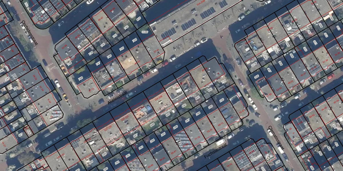 Het perceel waarop Akeleistraat 102 staat heeft een oppervlakte van 204 m². Dit is een middelgroot perceel. De perceeloppervlakte wordt geregistreerd door het Kadaster. Gedetailleerde informatie over de maten van dit perceel kunt u vinden in het rapport Kadastrale kaart met maatvoering van Akeleistraat 102.
