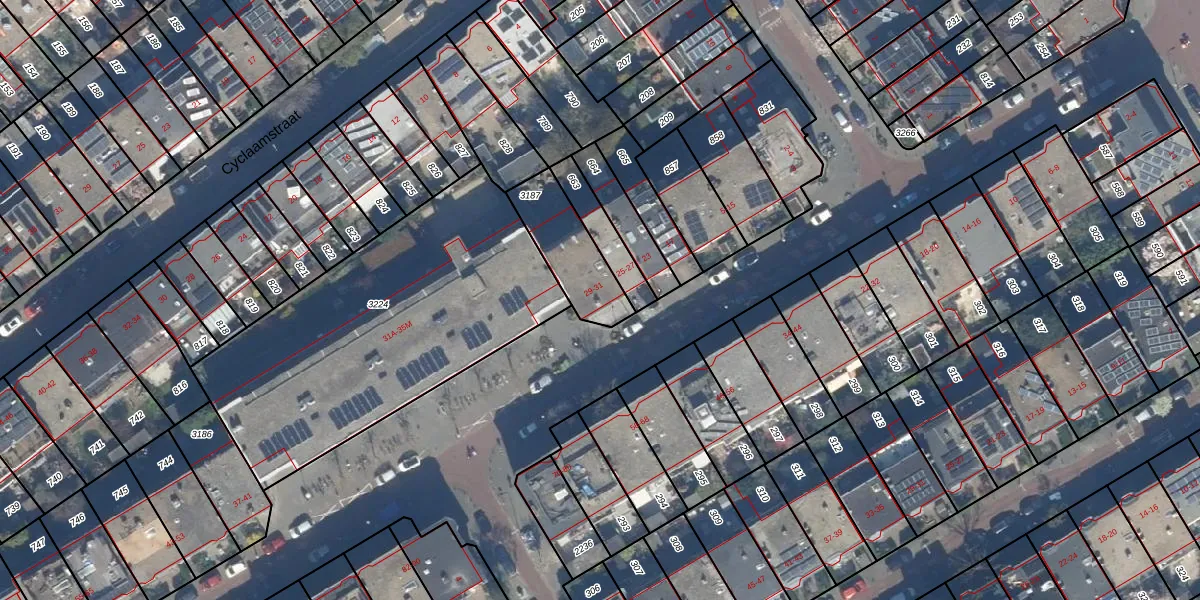 Het adres is gelegen op perceel 3187 in de sectie AV en de kadastrale gemeente 's-Gravenhage. De kadastrale aanduiding is aldus GVH36-AV-3187. De gemiddelde perceelgrootte in 's-Gravenhage is 362,09 m². Dit perceel is kleiner: de perceeloppervlakte bedraagt 233 m². Het kleinste perceel in de kadastrale gemeente is 2 m² groot. De grootste perceeloppervlakte is 8,1 ha. Op het perceel liggen in totaal 2 adressen. De laatste wijziging in het de Basisregistratie Kadaster (BRK) was op 26-09-2007.