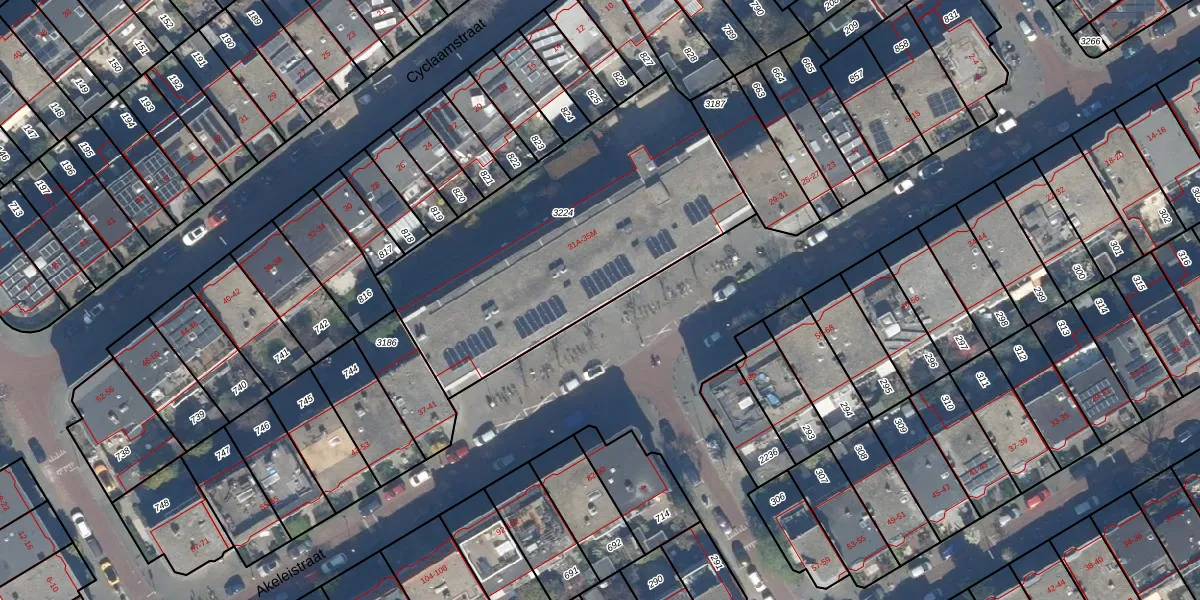Het perceel waarop Akeleistraat 35-M staat heeft een oppervlakte van 1552 m². Dit is een zeer groot perceel. De perceeloppervlakte wordt geregistreerd door het Kadaster. Gedetailleerde informatie over de maten van dit perceel kunt u vinden in het rapport Kadastrale kaart met maatvoering van Akeleistraat 35-M.