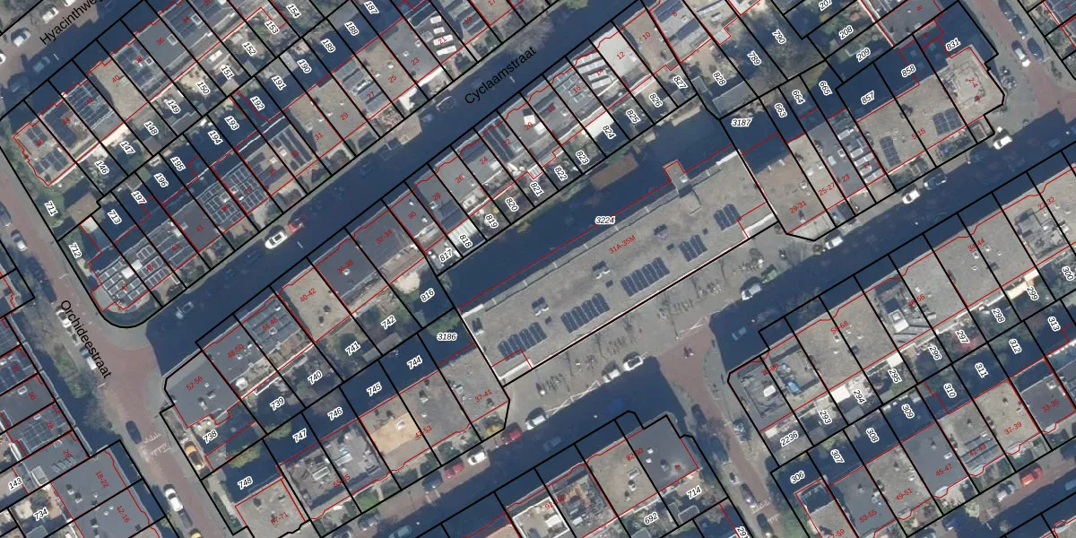 Het adres is gelegen op perceel 3224 in de sectie AV en de kadastrale gemeente 's-Gravenhage. De kadastrale aanduiding is aldus GVH36-AV-3224. Het perceel is met 1552 m² relatief groot. Het gemiddelde ligt in de kadastrale gemeente 's-Gravenhage op 362,09 m². De grootste perceeloppervlakte in de kadastrale gemeente is 8,1 ha. De kleinste oppervlakte bedraagt 2 m². Op het perceel liggen in totaal 20 adressen. In de Basisregistratie Kadaster (BRK) werden de grenzen van het perceel geregistreerd op 26-09-2007.