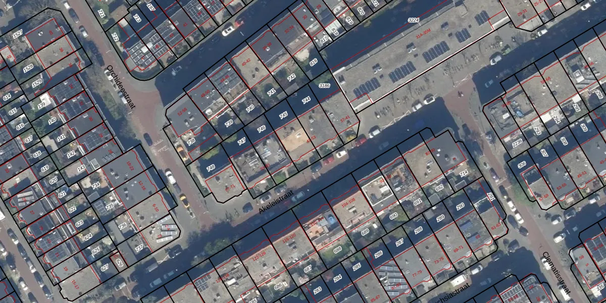 Het perceel waarop Akeleistraat 53 staat heeft een oppervlakte van 200 m². Dit is een middelgroot perceel. De perceeloppervlakte wordt geregistreerd door het Kadaster. Gedetailleerde informatie over de maten van dit perceel kunt u vinden in het rapport Kadastrale kaart met maatvoering van Akeleistraat 53.