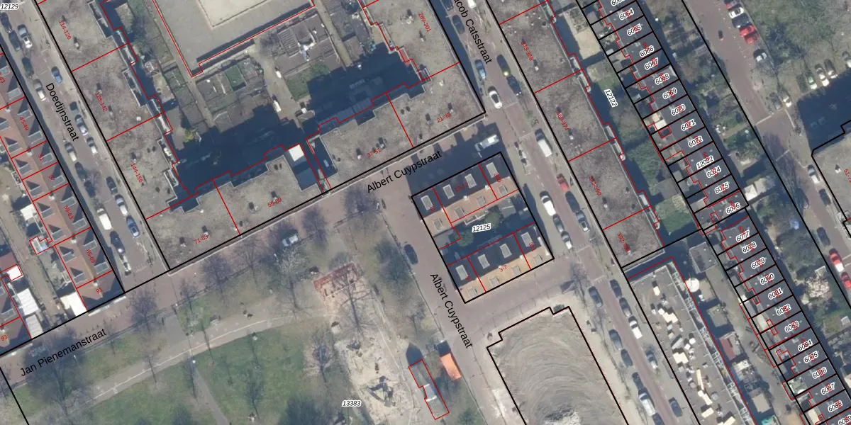 Het perceel waarop Albert Cuypstraat 11 staat heeft een oppervlakte van 660 m². Dit is een groot perceel. De perceeloppervlakte wordt geregistreerd door het Kadaster. Gedetailleerde informatie over de maten van dit perceel kunt u vinden in het rapport Kadastrale kaart met maatvoering van Albert Cuypstraat 11.
