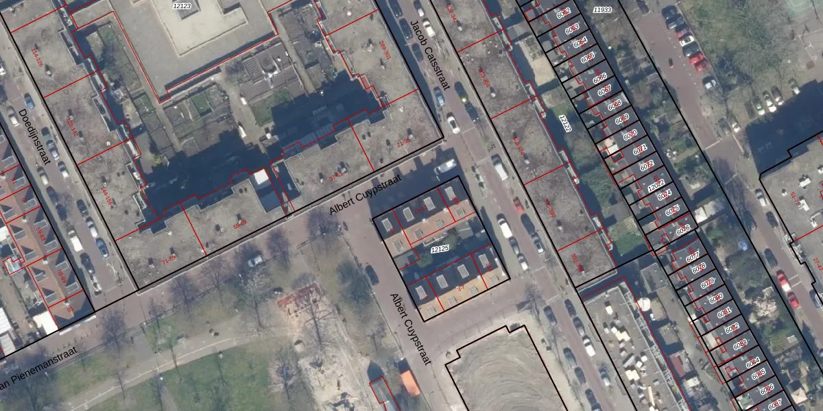 Het perceel waarop Albert Cuypstraat 13 staat heeft een oppervlakte van 660 m². Dit is een groot perceel. De perceeloppervlakte wordt geregistreerd door het Kadaster. Gedetailleerde informatie over de maten van dit perceel kunt u vinden in het rapport Kadastrale kaart met maatvoering van Albert Cuypstraat 13.