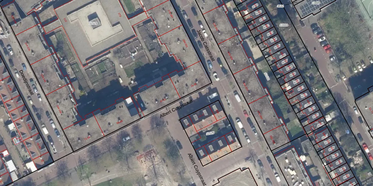 Albert Cuypstraat 33 is gelegen op kadastraal perceel GVH08L12123. Deze kadastrale aanduiding is uniek en wordt gebruikt door het Kadaster om eigendomsrechten en andere zakelijke rechten vast te leggen. Het perceel maakt onderdeel uit van de kadastrale gemeente 's-Gravenhage.