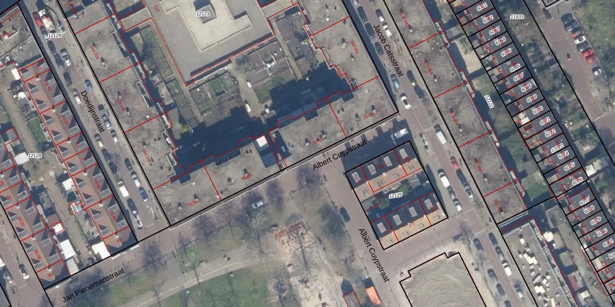 Het perceel waarop Albert Cuypstraat 49 staat heeft een oppervlakte van 7980 m². Dit is een zeer groot perceel. De perceeloppervlakte wordt geregistreerd door het Kadaster. Gedetailleerde informatie over de maten van dit perceel kunt u vinden in het rapport Kadastrale kaart met maatvoering van Albert Cuypstraat 49.
