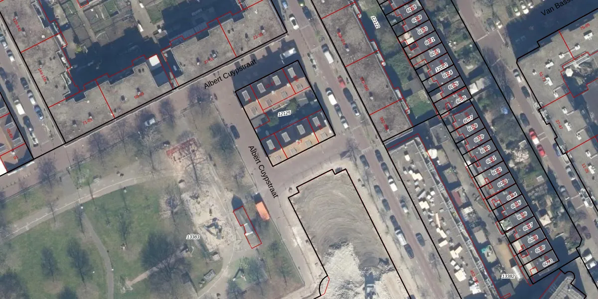 Het perceel waarop Albert Cuypstraat 7 staat heeft een oppervlakte van 660 m². Dit is een groot perceel. De perceeloppervlakte wordt geregistreerd door het Kadaster. Gedetailleerde informatie over de maten van dit perceel kunt u vinden in het rapport Kadastrale kaart met maatvoering van Albert Cuypstraat 7.