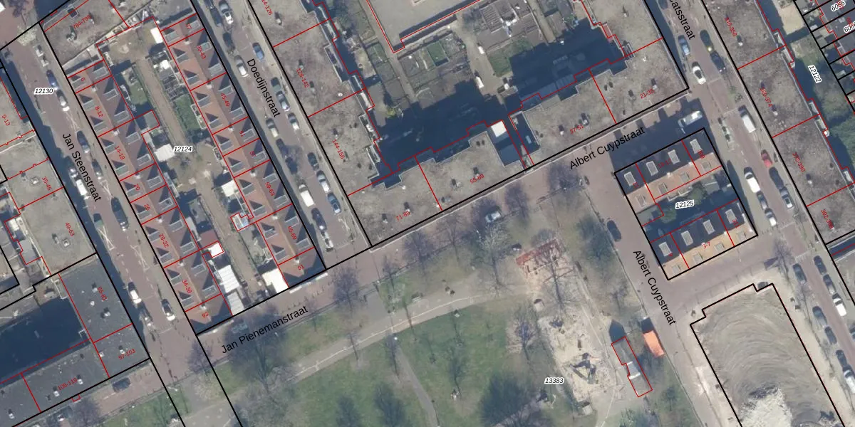 Het perceel waarop Albert Cuypstraat 75 staat heeft een oppervlakte van 7980 m². Dit is een zeer groot perceel. De perceeloppervlakte wordt geregistreerd door het Kadaster. Gedetailleerde informatie over de maten van dit perceel kunt u vinden in het rapport Kadastrale kaart met maatvoering van Albert Cuypstraat 75.