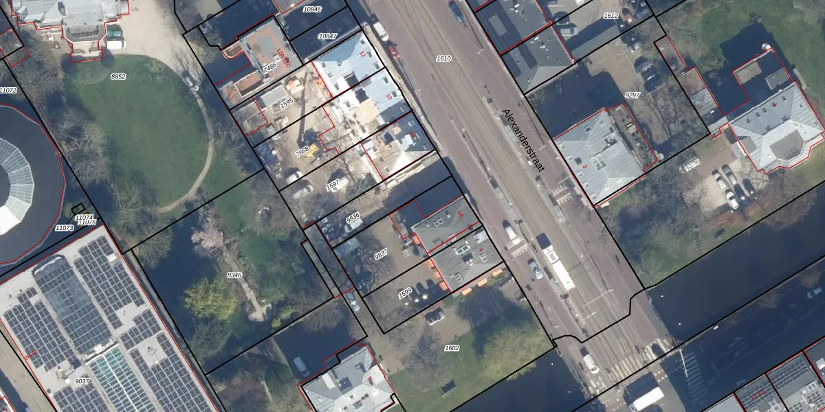 Het perceel waarop Alexanderstraat 6-A staat heeft een oppervlakte van 469 m². Dit is een groot perceel. De perceeloppervlakte wordt geregistreerd door het Kadaster. Gedetailleerde informatie over de maten van dit perceel kunt u vinden in het rapport Kadastrale kaart met maatvoering van Alexanderstraat 6-A.