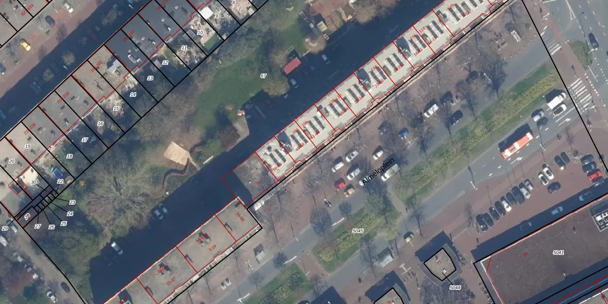 Het perceel waarop Almeloplein 46 staat heeft een oppervlakte van 9113 m². Dit is een zeer groot perceel. De perceeloppervlakte wordt geregistreerd door het Kadaster. Gedetailleerde informatie over de maten van dit perceel kunt u vinden in het rapport Kadastrale kaart met maatvoering van Almeloplein 46.