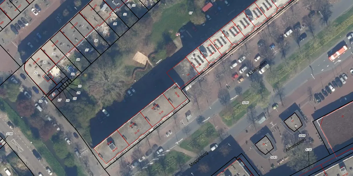 Het perceel waarop Almeloplein 58 staat heeft een oppervlakte van 9113 m². Dit is een zeer groot perceel. De perceeloppervlakte wordt geregistreerd door het Kadaster. Gedetailleerde informatie over de maten van dit perceel kunt u vinden in het rapport Kadastrale kaart met maatvoering van Almeloplein 58.