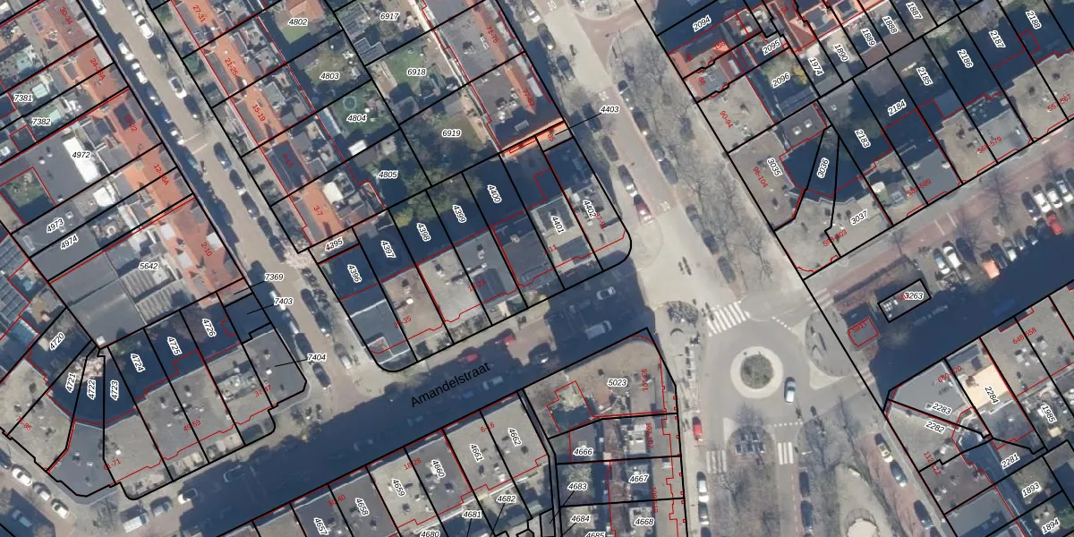 Amandelstraat 9 is gelegen op kadastraal perceel LDN03I4400. Deze kadastrale aanduiding is uniek en wordt gebruikt door het Kadaster om eigendomsrechten en andere zakelijke rechten vast te leggen. Het perceel maakt onderdeel uit van de kadastrale gemeente Loosduinen.