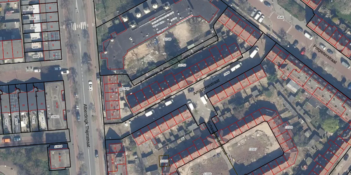 Het perceel waarop Amazonestraat 17 staat heeft een oppervlakte van 1890 m². Dit is een zeer groot perceel. De perceeloppervlakte wordt geregistreerd door het Kadaster. Gedetailleerde informatie over de maten van dit perceel kunt u vinden in het rapport Kadastrale kaart met maatvoering van Amazonestraat 17.