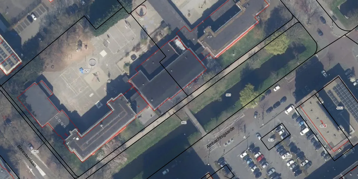 Het perceel waarop Ambachtsgaarde 3 staat heeft een oppervlakte van 5314 m². Dit is een zeer groot perceel. De perceeloppervlakte wordt geregistreerd door het Kadaster. Gedetailleerde informatie over de maten van dit perceel kunt u vinden in het rapport Kadastrale kaart met maatvoering van Ambachtsgaarde 3.