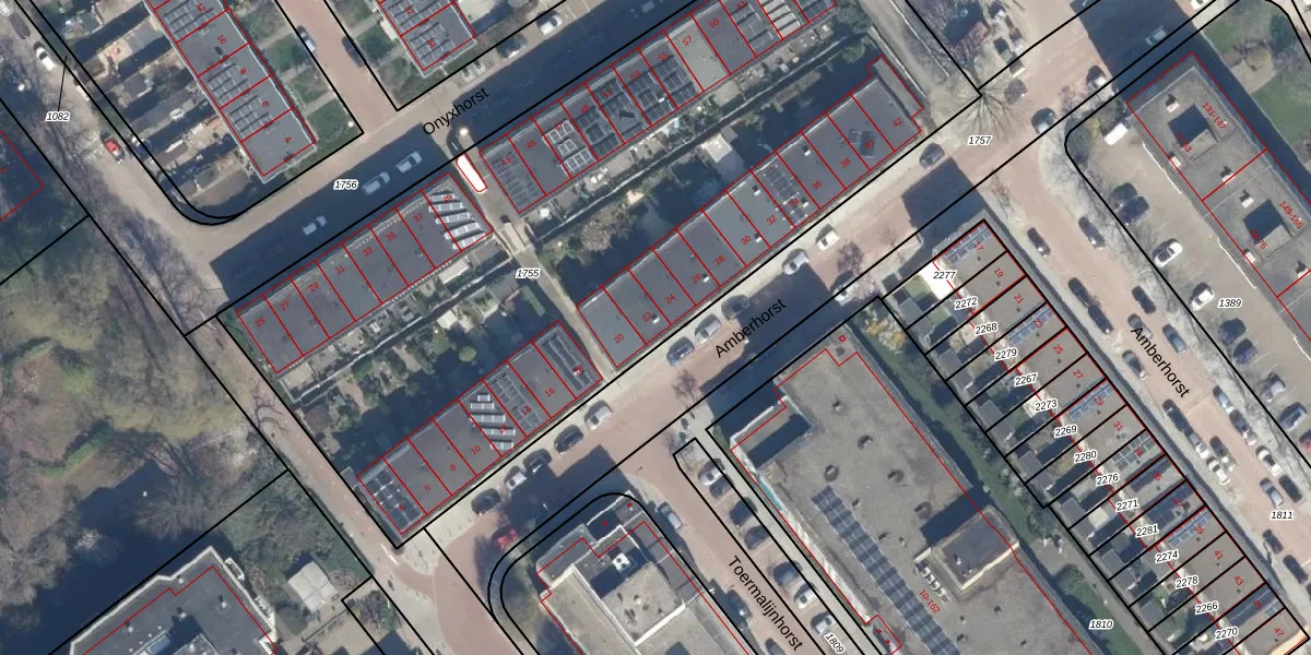 Het perceel waarop Amberhorst 22 staat heeft een oppervlakte van 4526 m². Dit is een zeer groot perceel. De perceeloppervlakte wordt geregistreerd door het Kadaster. Gedetailleerde informatie over de maten van dit perceel kunt u vinden in het rapport Kadastrale kaart met maatvoering van Amberhorst 22.