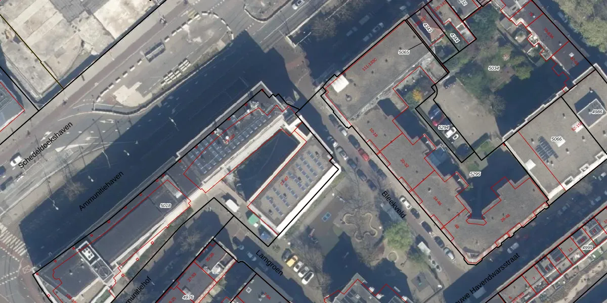 Het perceel waarop Ammunitiehaven 81 staat heeft een oppervlakte van 2682 m². Dit is een zeer groot perceel. De perceeloppervlakte wordt geregistreerd door het Kadaster. Gedetailleerde informatie over de maten van dit perceel kunt u vinden in het rapport Kadastrale kaart met maatvoering van Ammunitiehaven 81.
